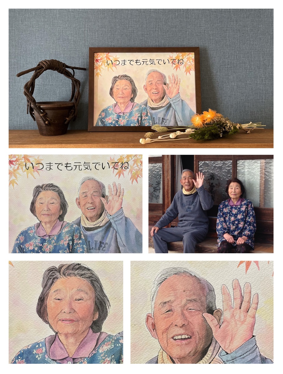 おじいちゃん、おばあちゃんの好きなものの画像をお送りいただければ一緒に描くことができます。にっこり楽しくなってもらえるよう、より特別な贈り物に。