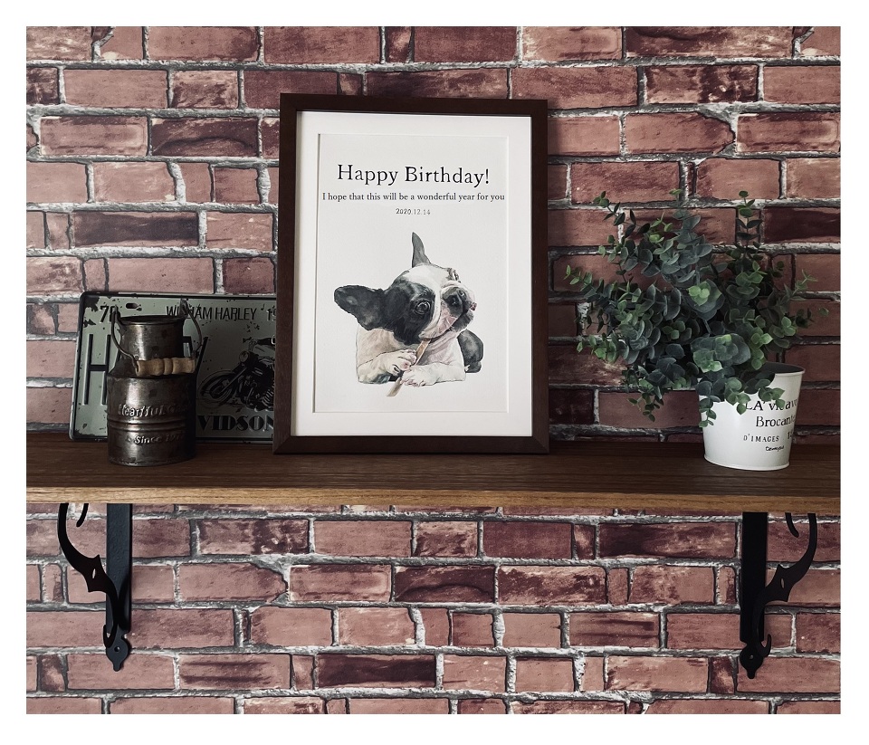 かわいいペットの表情をとどめて作品に。お部屋の雰囲気にあった色合いに仕上げることもできます。お好みの色合いを「ご注文フォーム備考欄」からお気兼ねなくご相談ください。